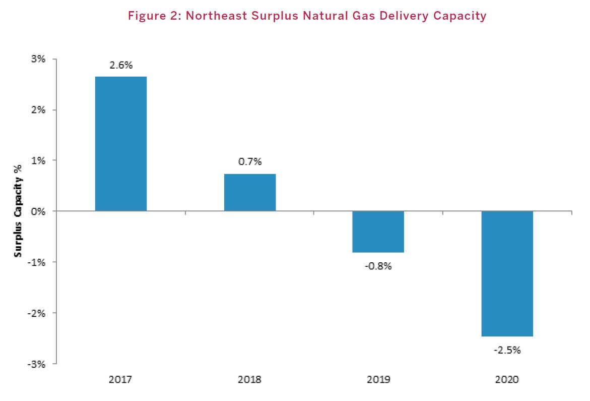 “Currently, natural gas demand in New England averages 9 to 10 Bcf/d, with demand peaks in the winter reaching 20.8 Bcf/d. The existing natural gas delivery network is simply not robust enough to facilitate these spikes.”