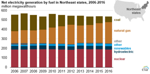 The head of New England’s power grid recently said reliable delivery of electricity during deep-winter cold snaps is already precarious and will become “unsustainable” after 2019, when Entergy will permanently close its 680-MW Pilgrim Nuclear Generating Station. Hydro and other renewable sources now provide about 15% of Massachusetts’ electricity.