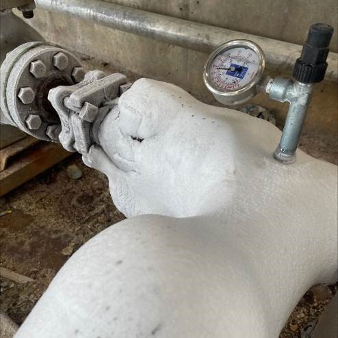 In cold climates, the issue becomes even more pronounced. Persistent condensation can freeze, forming thick ice that envelops valves, flanges and controls, sometimes rendering critical equipment inoperable (FIG. 5). These icing events not only compromise reliability and safety, but they also complicate maintenance by requiring deicing before inspection or repairs can proceed.