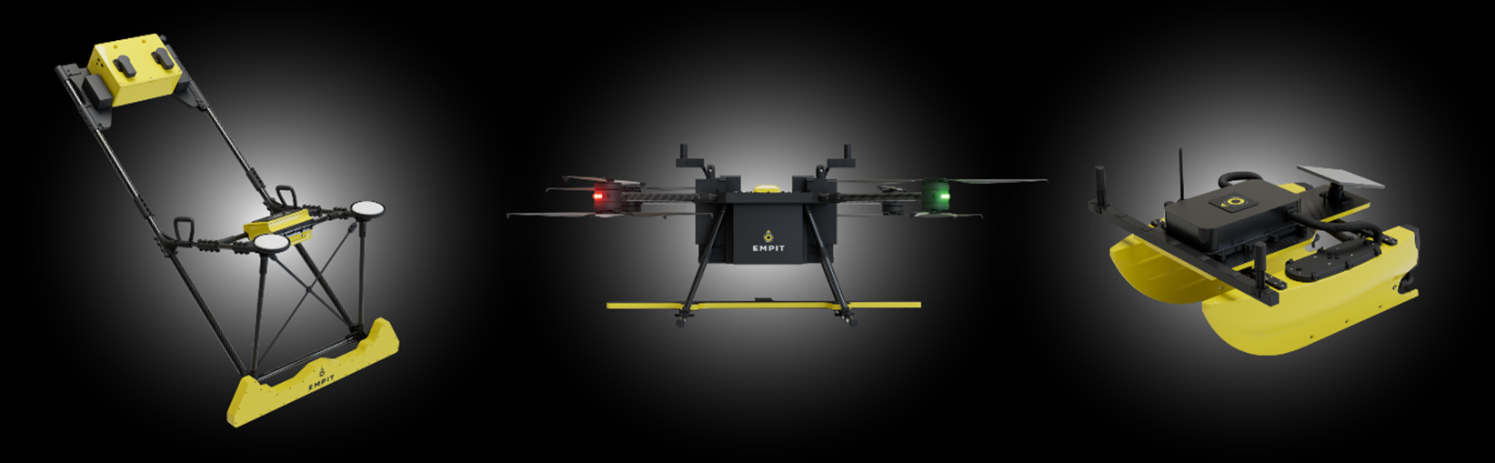 The magnetic field is detected and evaluated from several air-, land- and water-based inspection units, with up to 20,000 measurement points per second with up to 70 sensors (FIG. 3). The different units allow seamless over-the-line pipeline inspections independent of surface conditions. For example, at water crossings—where integrity surveys are critical—autonomous drones or inspection boats (FIG. 4) can be used. In the future, offshore pipelines in depths up to 3,000 meters (m) could be surveyed by intelligent underwater vehicles (ROVs).