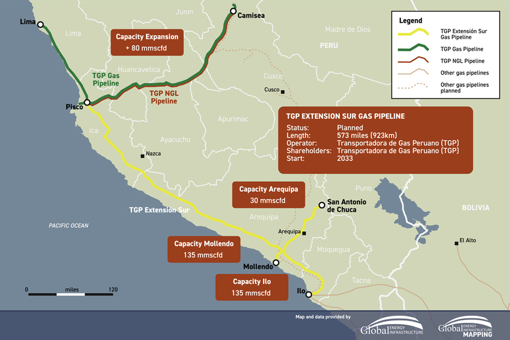 (P&GJ) – The Southern Extension gas pipeline project is an infrastructure project that will be led by the Peruvian company Transportadora de Gas del Perú (TGP).