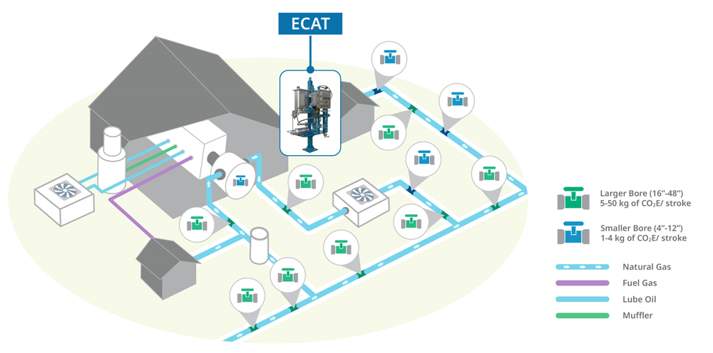 One gas compression facility used 12 gas-over-oil actuators that had to be converted for zero emissions, and conversion costs to electrical actuators were compared against an ECAT Hub installation. The ECAT Hub option offered a 70% reduction in capital installation costs, as well as a 65% savings on 10 yrs of operating expenses (OPEX). The outage time was also dramatically reduced since the existing actuators and most of the controls could remain as they were.