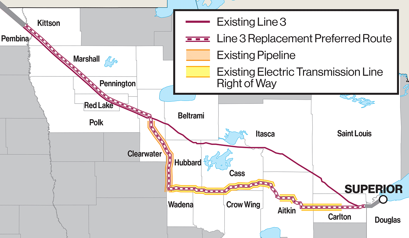Calgary, Alberta-based Enbridge built the current Line 3 in the 1960s. It carries light crude oil from Alberta across North Dakota and Minnesota to the company’s terminal in Superior, Wisc.
