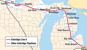 Enbridge, the Canadian company whose Line 5 runs 645 miles (1,038 km) between Superior, Wisc., and Sarnia, Ont., produced the analysis of possible alternatives for replacing the 4.5-mile-long (7-km-long) segment at the bottom of the Straits of Mackinac between Lakes Huron and Michigan.