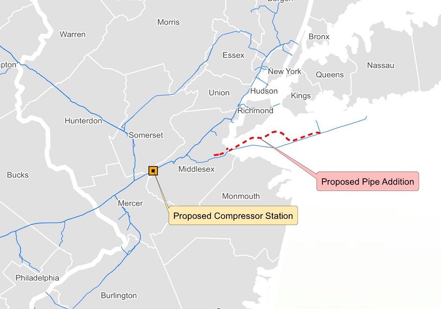 The Northeast Supply Enhancement Project would add to the existing Transco pipeline and would carry enough gas to heat 2.3 million homes. It would take gas from Pennsylvania through New Jersey and its Raritan Bay to New York.