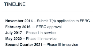 Phase I of the Hillabee expansion project was placed in service in July 2017. Phase II of the project included the construction of approximately 11 miles of pipeline looping, a new compressor at Station 95, and modifications to a compressor at Station 100.