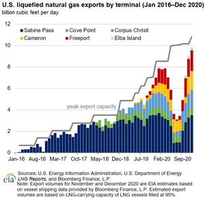 Factors to the higher levels of U.S. LNG exports include colder-than-normal winter temperatures in key Asian LNG-consuming markets and unplanned outages at LNG export facilities in Australia, Malaysia, Qatar, Norway, Nigeria and Trinidad and Tobago. These outages increased natural gas and LNG prices in Asia and Europe, attracting higher volumes of flexible LNG supplies from the U.S., according to the EIA report.