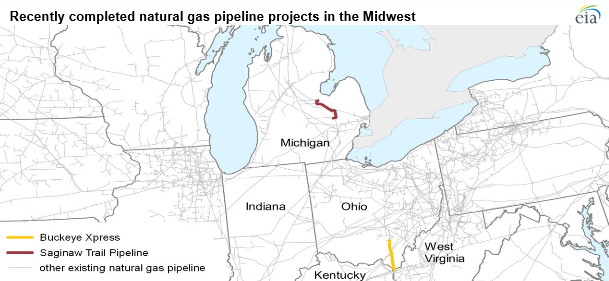 Consumer Energy’s $610 million intrastate Saginaw Trail Pipeline entered service in late November 2020. The project replaced and expanded natural gas pipelines and infrastructure in Saginaw, Genesse, and Oakland Counties in Michigan, increasing natural gas capacity by 0.2 Bcf/d.