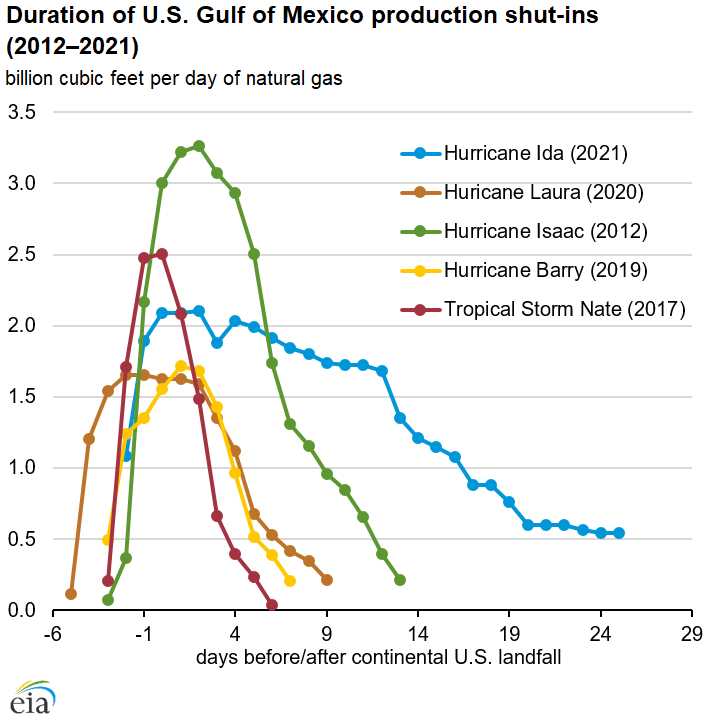 Ida Reduced US NatGas Production More Than Any Hurricane in Past Decade