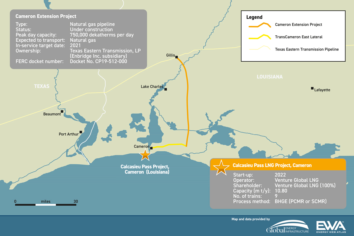 TransCameron Pipeline received FERC authorization in February 2019 and Venture Global LNG expects it to have capacity of 2.1 Bcf/d by 2022.