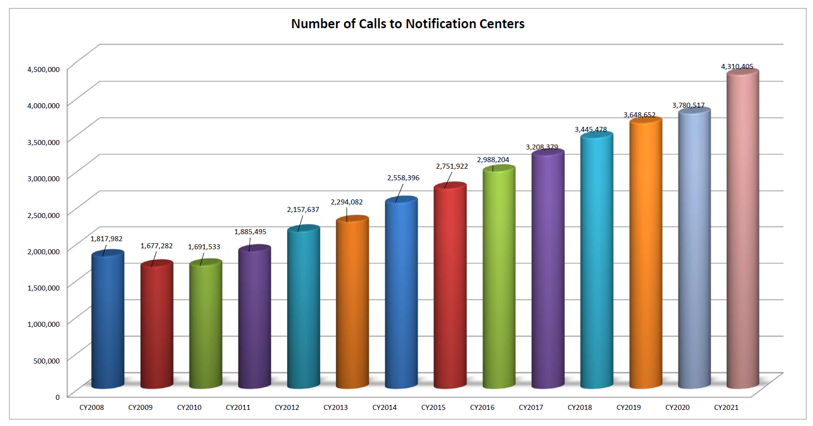 In 2020, the total number of 811 calls to locate was 3.78 million, which jumped to 4.31 million in 2021.