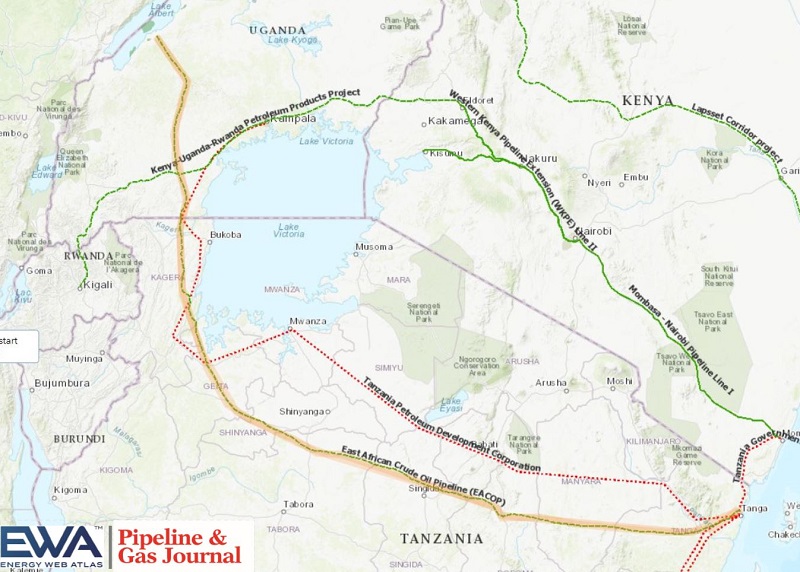 The heated crude oil pipeline will carry oil from Uganda to the Indian Ocean coast of Tanzania.