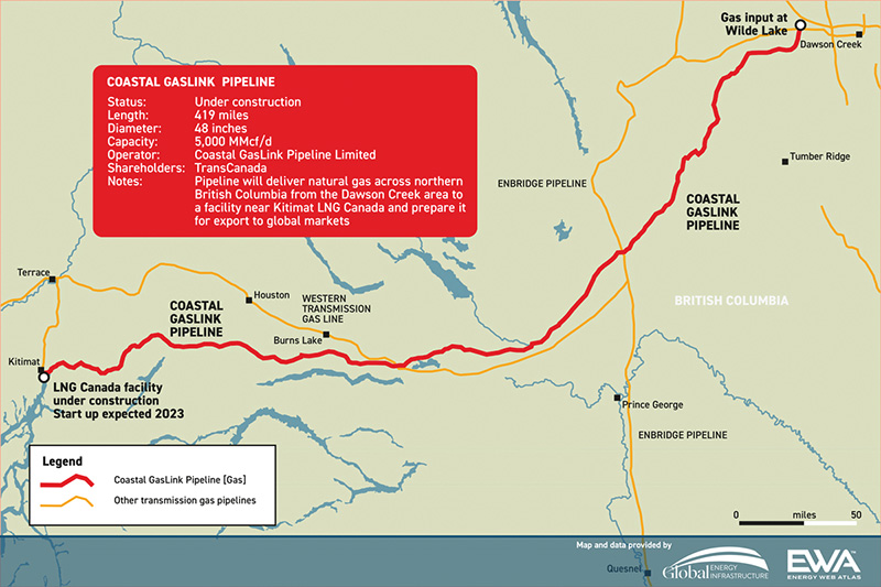 Coastal GasLink connects gas fields in northwestern British Columbia with the Shell-led LNG Canada project.